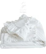 نحوه استفاده و نصب کاور لحاف در سرویس کاورهای روتختی سافت در طراحی داخلی کاور لحاف مدل سافت، ۶ بند نگهدارنده تعبیه شده است: چهار بند در گوشه‌ها و دو بند در امتداد طول کاور. برای استفاده صحیح، کافی‌ست لحاف را داخل کاور قرار دهید و بندها را محکم به گوشه‌ها و کناره‌های لحاف گره بزنید. این کار باعث می‌شود لحاف به‌خوبی در جای خود ثابت بماند و هنگام استفاده، از جابه‌جایی و جمع‌شدن در داخل کاور جلوگیری شود. این ویژگی هوشمندانه، علاوه‌بر حفظ نظم و زیبایی روتختی، تجربه‌ای راحت و بی‌دردسر نصب و جداسازی را برای شما دارد